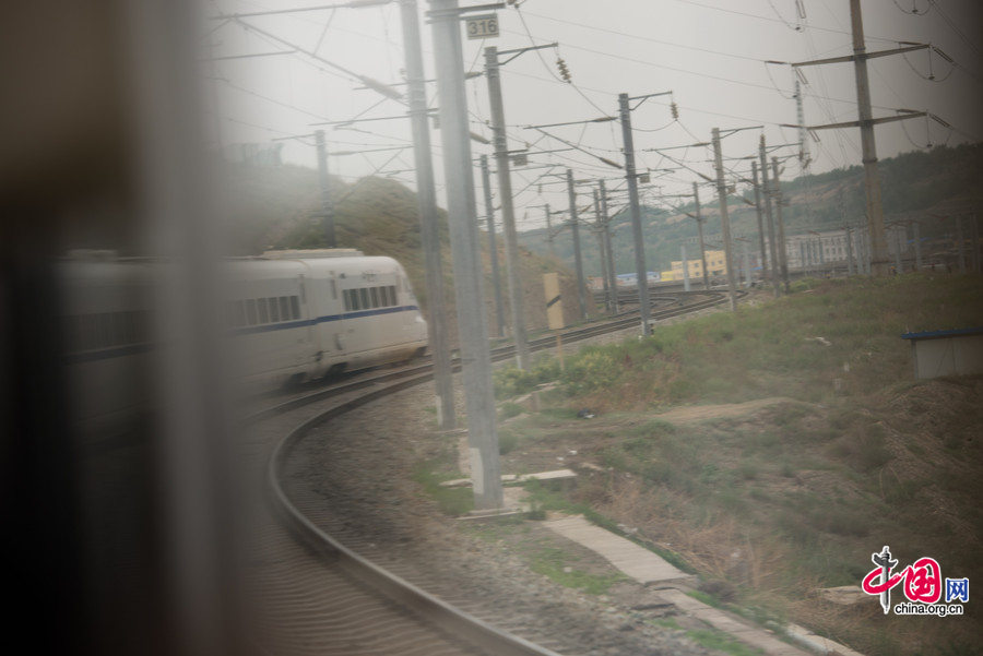 A CRH train is en route to complete a system integration test run of the Xinjiang-Lanzhou High-Speed Railway on Tuesday, June 3, 2014. [Photo by Chen Boyuan / China.org.cn]