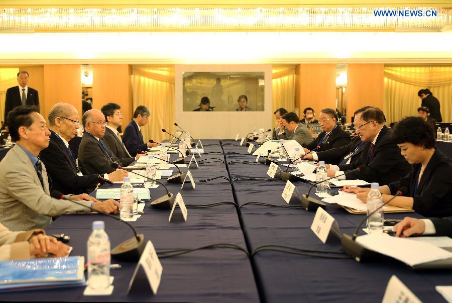 | Photo taken on June 5, 2014 shows a meeting of the 21st Century Committee for China-Japan Friendship Committee, in Nagasaki, Japan, on June 5, 2014. (Xinhua/Liu Tian) |