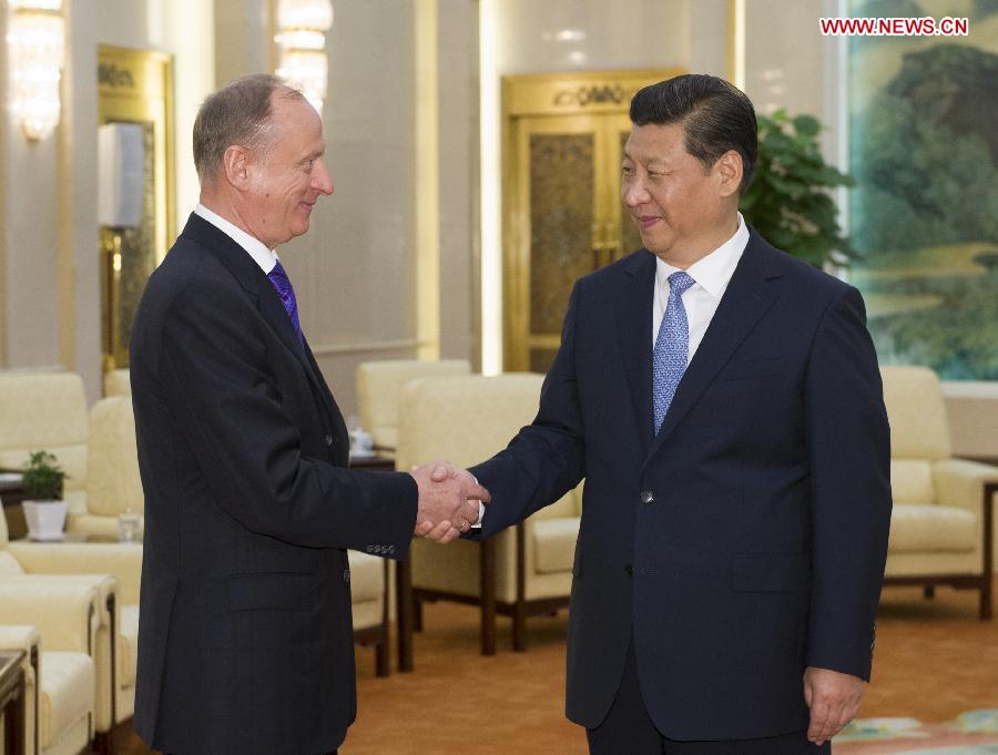 | Chinese President Xi Jinping (R) meets with Russian Security Council Secretary Nikolai Patrushev in Beijing, capital of China, June 6, 2014. Nikolai Patrushev was here to attend the first meeting of China-Russia institutionalized cooperation in law enforcement and security and the 10th round of China-Russia strategic security consultation. (Xinhua/Xie Huanchi) |