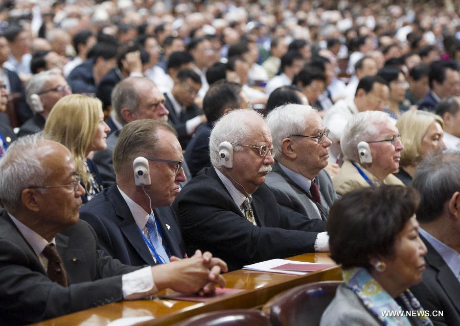 Delegates attend the opening ceremony of the 17th Congress of the Chinese Academy of Sciences (CAS) and the 12th Congress of the Chinese Academy of Engineering (CAE) in Beijing, capital of China, June 9, 2014. (Xinhua/Pang Xinglei)