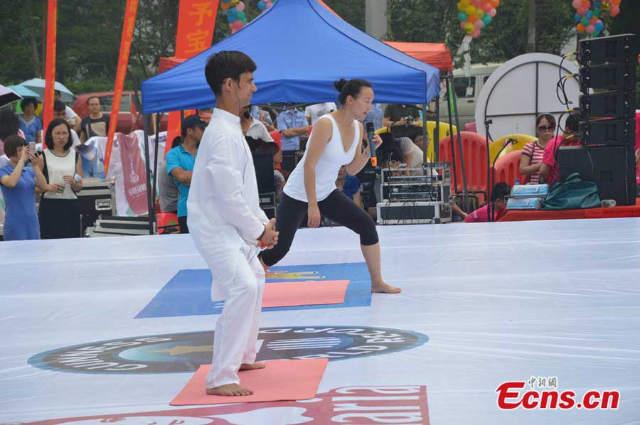 A total of 505 pregnant women set a new Guinness World Record on yoga at a park in Changsha of central China's Hunan province on June 8, 2014. The 505 participants practiced yoga for 37 minutes and 28 seconds, breaking the record in 2013 in Shenzhen which involved 423 pregnant women. According to Guinness certification officer Cheng Dong, to set the new record, all the participants are expected to be over 12 weeks in pregnancy with medical certificates and their challenge lasts no less than 30 minutes. (Photo/China News Service)