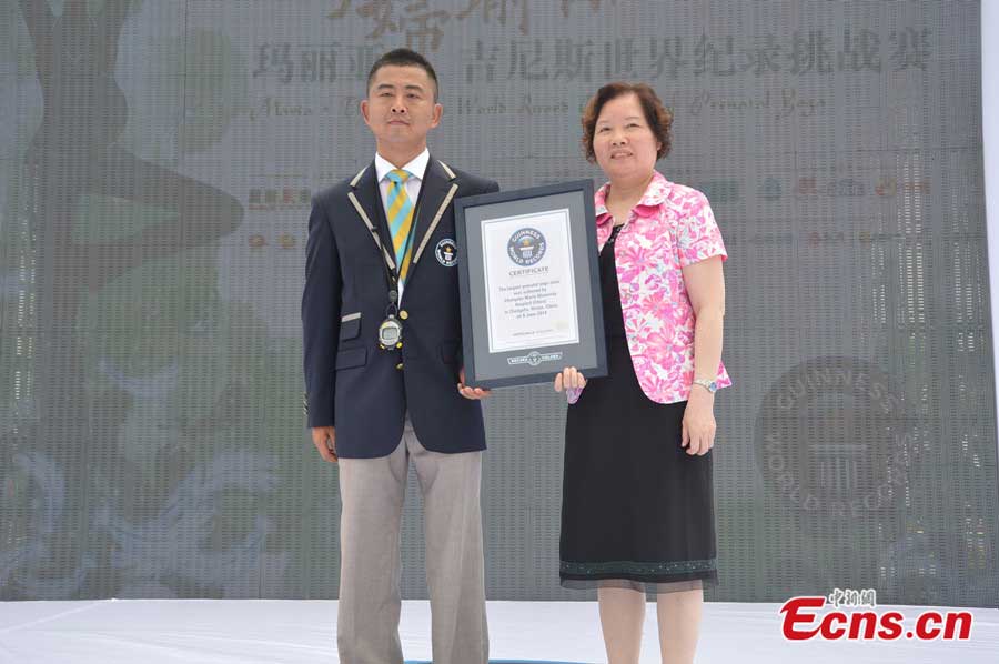 A total of 505 pregnant women set a new Guinness World Record on yoga at a park in Changsha of central China's Hunan province on June 8, 2014. The 505 participants practiced yoga for 37 minutes and 28 seconds, breaking the record in 2013 in Shenzhen which involved 423 pregnant women. According to Guinness certification officer Cheng Dong, to set the new record, all the participants are expected to be over 12 weeks in pregnancy with medical certificates and their challenge lasts no less than 30 minutes. (Photo/China News Service)