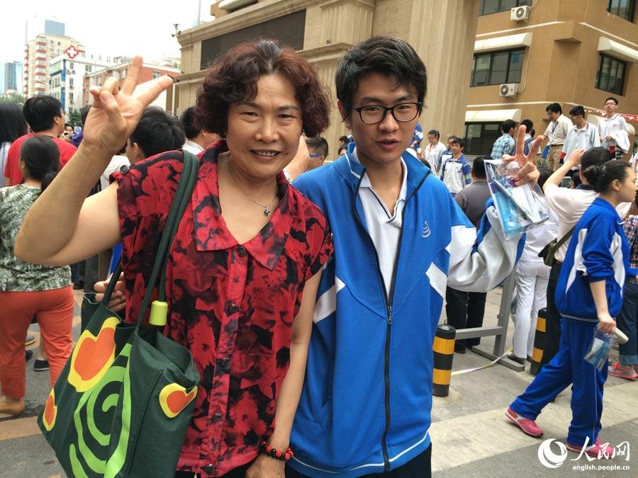A student poses for photo with his mother after finishing the National College Entrance Exam (NCEE) on June 8, 2014. (People’s Daily Online/ Wang Xin)