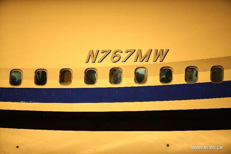 The plane carrying Japan's national soccer team arrives at the Viracopos airport prior of the 2014 World Cup in Campinas, Brazil, June 7, 2014. (Xinhua/Liao Yujie)