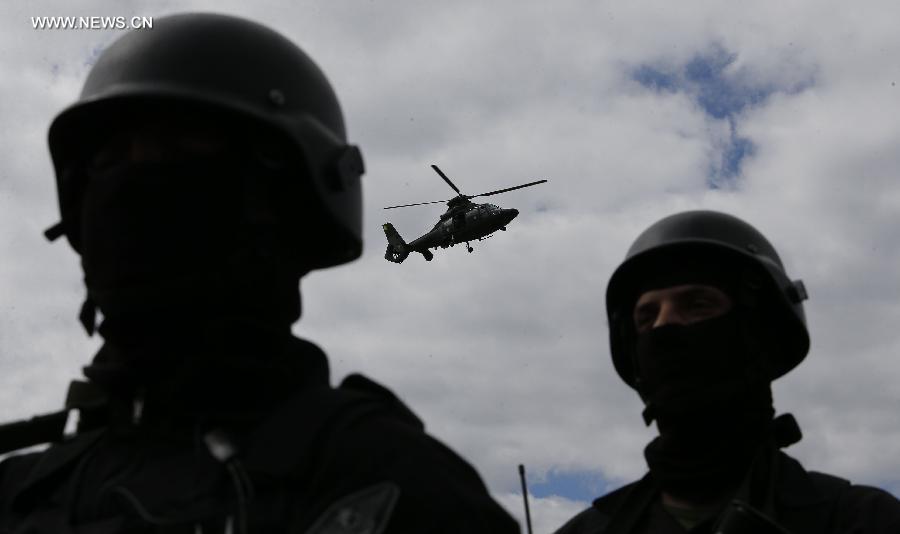 Members of armed forces participate in operational training for FIFA World Cup in Brasilia, Brazil, June 8, 2014. About 3,900 Army, Navy and Air Force Soldiers will take part in the security operations during the World Cup in Brazil. (Xinhua/Dida Sampaio/Estadao Conteudo/Agencia Estado)