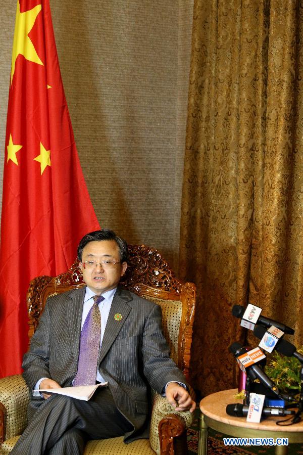 Chinese Vice Foreign Minister Liu Zhenmin speaks to media at a joint interview in Yangon, Myanmar, June 9, 2014. China will firmly support ASEAN's development, its community building and centrality in regional cooperation, and is also committed to growing a healthy, stable and dynamic China-ASEAN relationship, Chinese Vice Foreign Minister Liu Zhenmin told the press here Monday in a joint interview made by mediapersons from China and Myanmar. (Xinhua/U Aung)