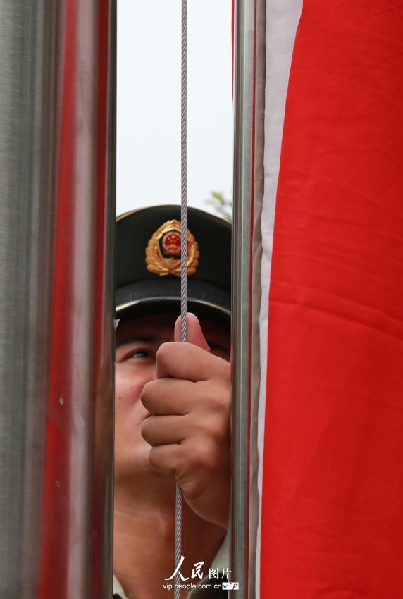 On June 7, more than 20 soldiers take part in training at Nanjing detachment of People's Armed Police Corps. The soldiers, with an average height of 183 cm and weight between 73 and 75 kg, were selected from about 3,000 soldiers to perform the flag-raising task at the opening and closing ceremonies of the Youth Olympic Games (YOG). (People .com. cn/Photo)