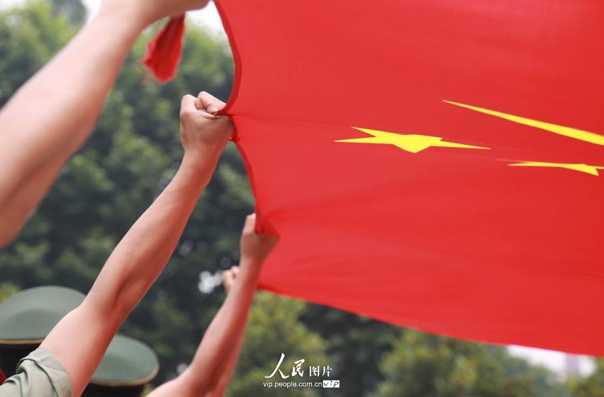 On June 7, more than 20 soldiers take part in training at Nanjing detachment of People's Armed Police Corps. The soldiers, with an average height of 183 cm and weight between 73 and 75 kg, were selected from about 3,000 soldiers to perform the flag-raising task at the opening and closing ceremonies of the Youth Olympic Games (YOG). (People .com. cn/Photo)