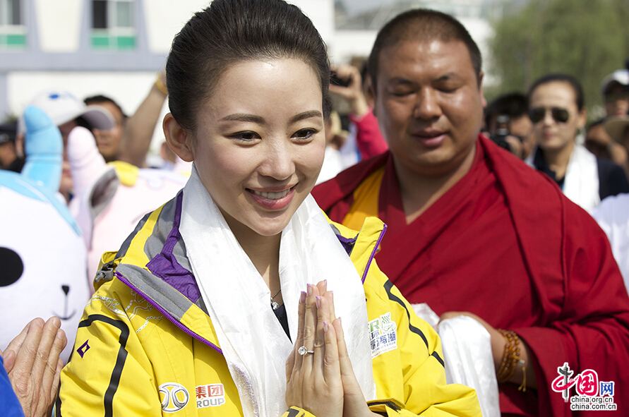 Chinese billiards star Pan Xiaoting attended the blessing ceremony of the first Qinghai Lake Electric Vehicle International Challenge Competition on June 9 in Xining. [Photo by Wu Wenda / China.org.cn]