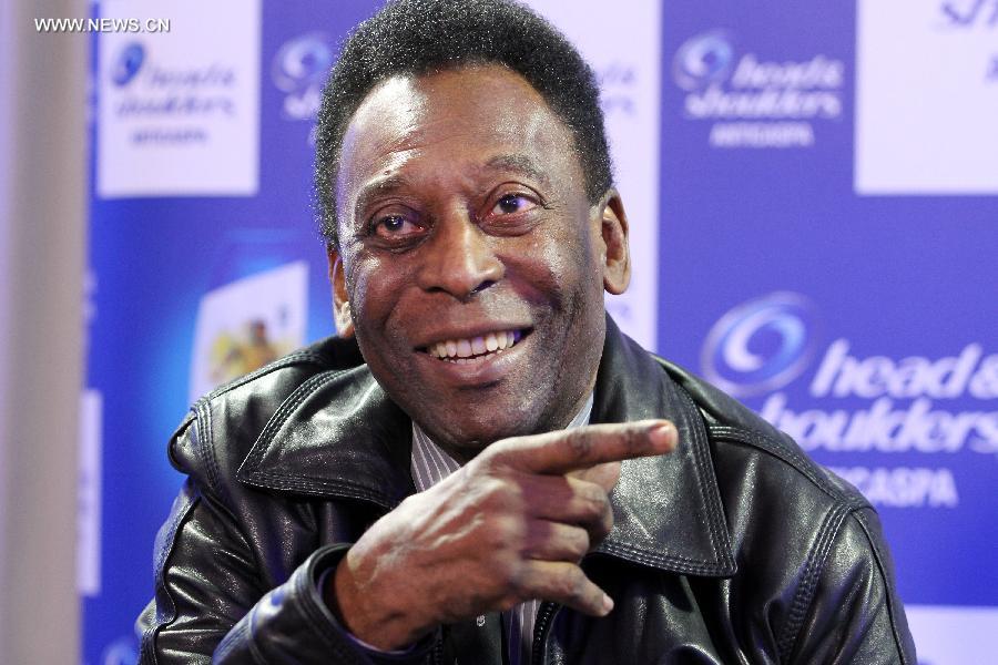 Brazilian former soccer player Edson Arantes do Nacimento "Pele", answers questions during an interview in Sao Paulo, Brazil, on June 10, 2014. FIFA's 2014 World Cup will be held from June 12 to July 13 in Brazil. (Xinhua/Marcelo D. Sants/Frame/Estadao Conteudo/AGENCIA ESTADO)