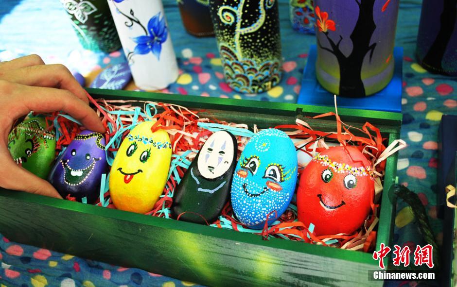 Colored drawing on stones. (Chinanews/Yu Shenghua)