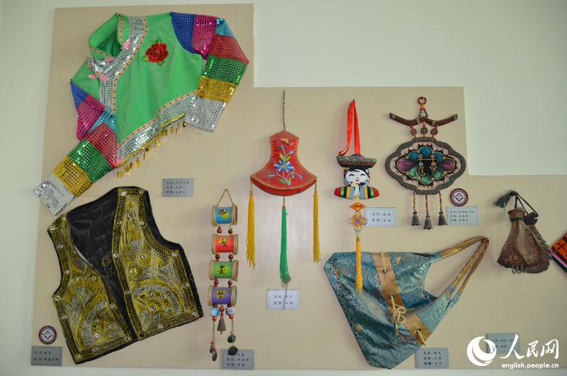 Ethnic costumes are displayed in Huimin Primary School Museum, June 3, 2014. (People's Daily Online/Du Mingming)