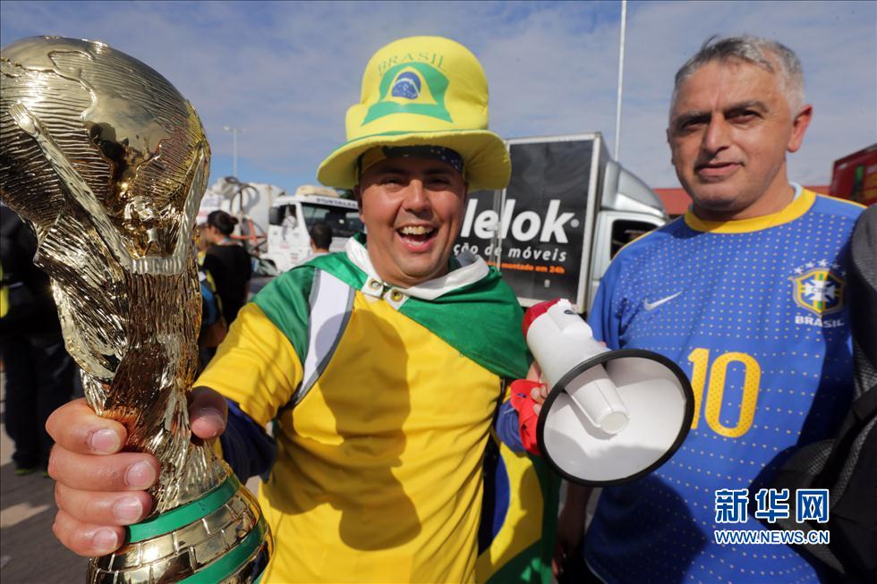 Soccer fans dressed up to pose for photos outside the stadium in Sao Paulo,on Jun 11,2014.(Xinhua/Sao Paolo agency)