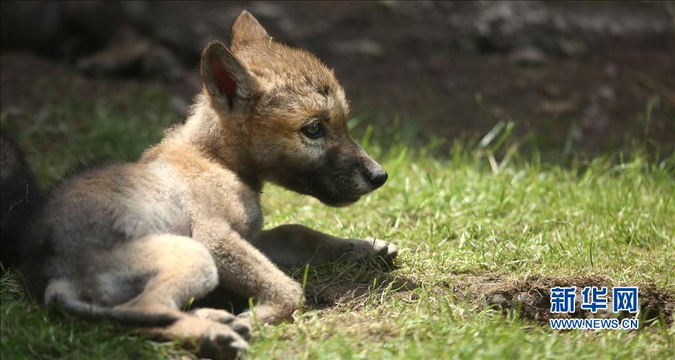A wolf cub sits on the floor at Shenyang Wildlife Zoo in Shenyang, Liaoning on June 4, 2014. Nine wolf cubs met with visitors in the zoo after artificial feeding for more than 50 days. (Xinhua/Yao Jianfeng)