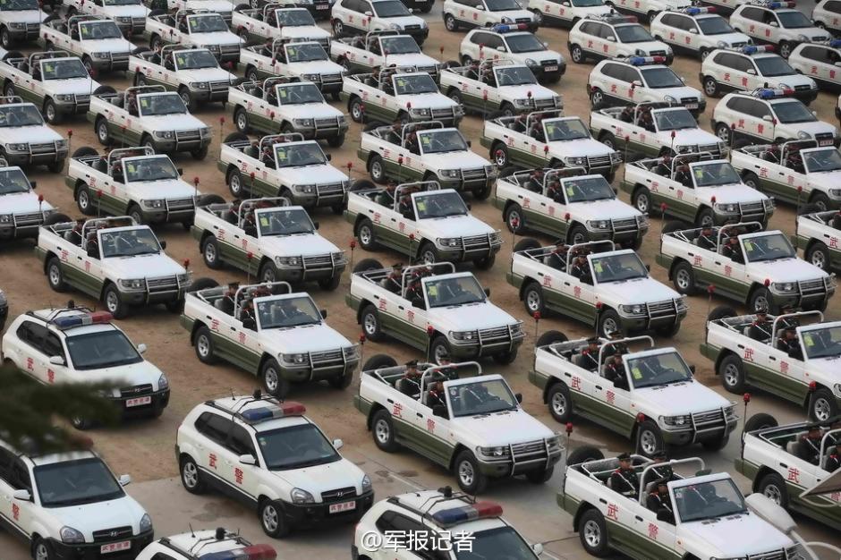 Recently, Beijing Armed Police Corps has deployed armed patrols to maintain stability in the capital. In armed patrol vehicles, there are anti-terrorism equipment, including anti-explosion blanket, anti-explosion pincers, vehicle station and vehicle GPS. Armed police soldiers carry guns with live ammunition and wear bulletproof helmets and bulletproof vests. They patrol important places like railway stations and airports in three shifts a day. (Photo/Liberation Army Daily)
