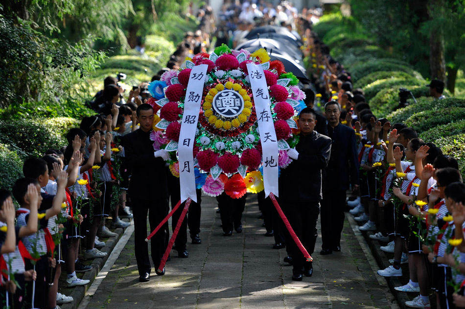 The 24 funeral urns with the remains of soldiers of Chinese Expeditionary Force and the graveyard dirt were laid to rest at the Tombs of Chinese Expeditionary Force, Guoshang Cemetery in Tengchong County, southwest China's Yunnan Province on June 12, 2014.