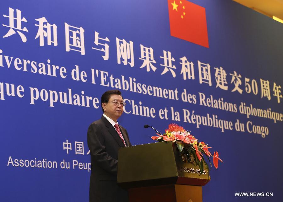 Zhang Dejiang, chairman of China's National People's Congress (NPC) Standing Committee, speaks at the celebration of the 50th anniversary of the establishment of diplomatic relations between China and the Republic of Congo in Beijing, capital of China, June 13, 2014. (Xinhua/Pang Xinglei)