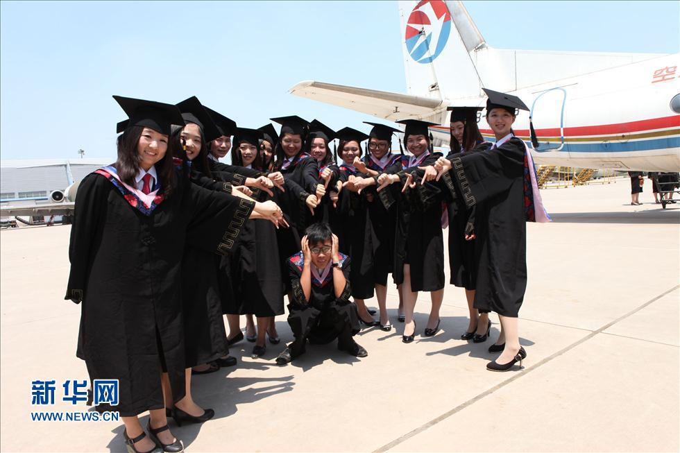 | A group of college students from Civil Aviation University of China take photos in front of the large passenger plane, and say goodbye to their colorful college life on June 12, 2014. As college graduation season comes, many graduates are busy having photos taken on campus as a memento. (Pang Jie/Xinhua News Agency) |