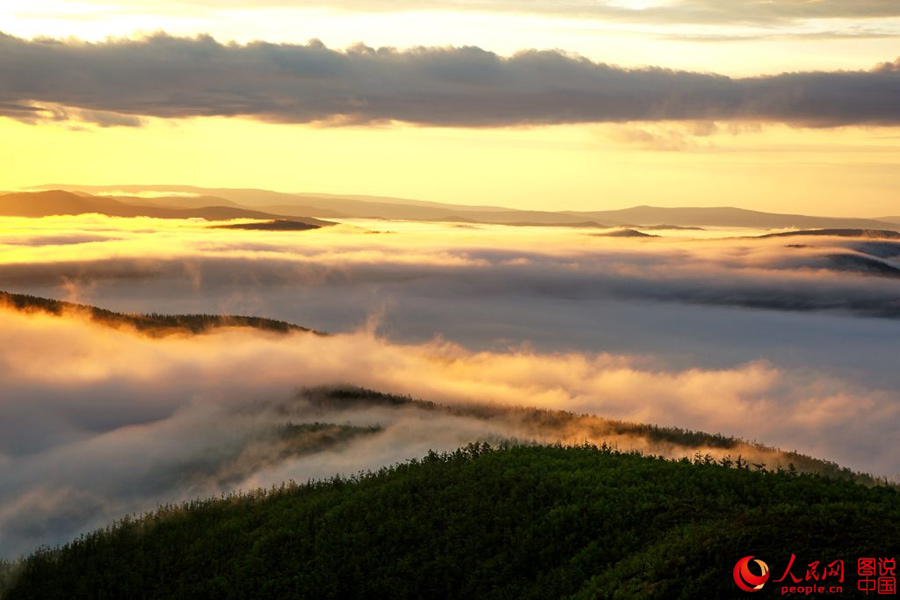 With an altitude of 1,404 meters, the Small Bule Mountain is the second highest among the Greater Khingan Mountains in northeast China. Amid the morning fog, the huge red sun rises. What a spectacular sight!(People's Daily Online)