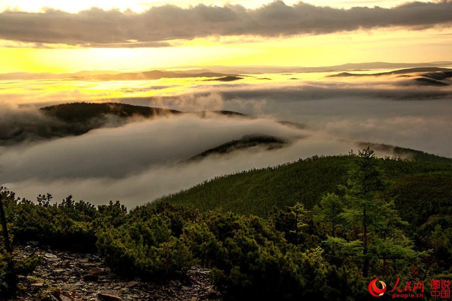 With an altitude of 1,404 meters, the Small Bule Mountain is the second highest among the Greater Khingan Mountains in northeast China. Amid the morning fog, the huge red sun rises. What a spectacular sight!(People's Daily Online)