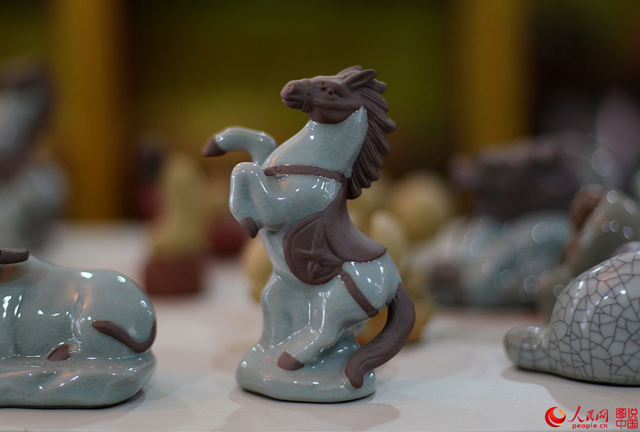 A tea pet is the pet kept by tea lovers and nourished by tea water. It is a kind of artware made by purple sands or clay. When enjoying the tea, the drinker will smear or sprinkle tea water on the tea pets. As time goes by, the tea pets will be moist with soft luster and tea aroma. Tea pets usually take the shape of mythical Chinese beasts, human figures and small animals to express good wishes.(People's Daily Online)
