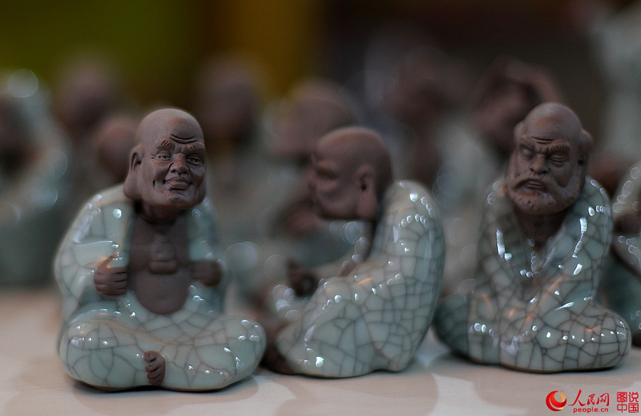 A tea pet is the pet kept by tea lovers and nourished by tea water. It is a kind of artware made by purple sands or clay. When enjoying the tea, the drinker will smear or sprinkle tea water on the tea pets. As time goes by, the tea pets will be moist with soft luster and tea aroma. Tea pets usually take the shape of mythical Chinese beasts, human figures and small animals to express good wishes.(People's Daily Online)