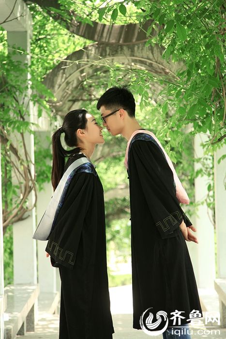 Two Shandong college graduates take creative photos to mark their love. (iqilu.com)