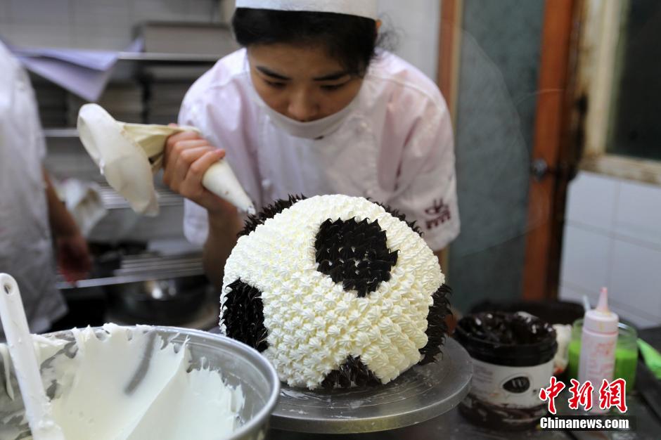 Cakes with the theme of the World Cup Football were sold at a store in east China's Jiangsu province. (China News Service/Xu Congjun)