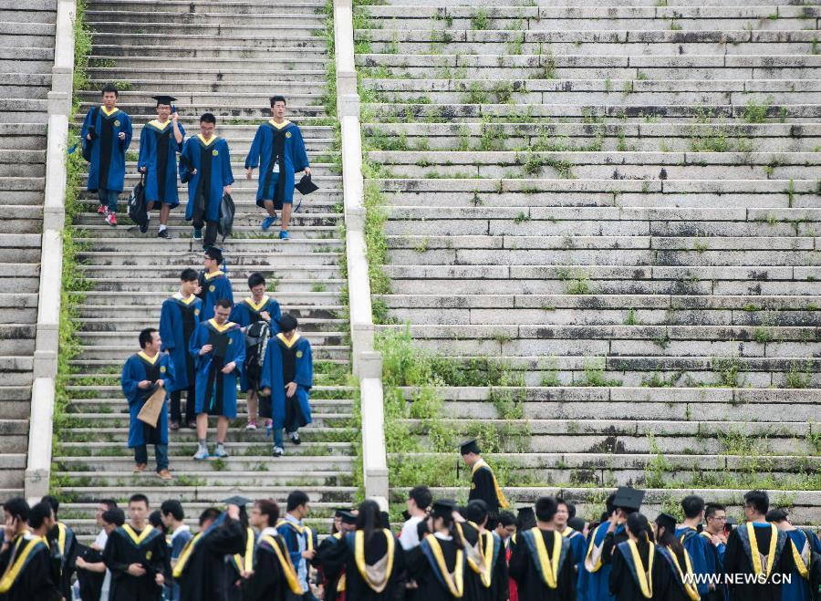 Graduates pose for photo at Xiamen University in Xiamen, southeast China's Fujian Province, June 18, 2014. Some 8,000 students will graduate from the university this year. (Xinhua/Shen Hong)