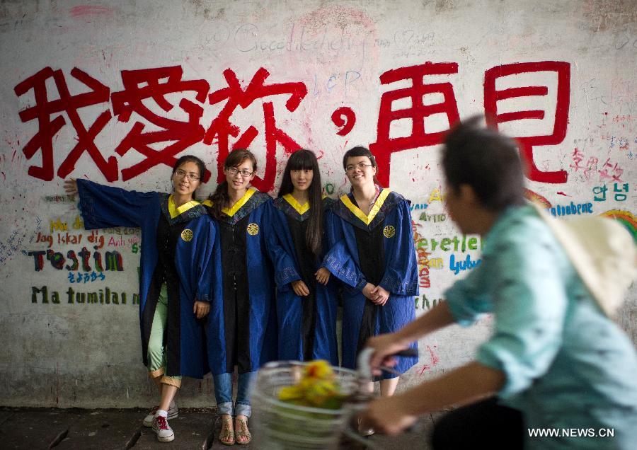 Graduates pose for photo at Xiamen University in Xiamen, southeast China's Fujian Province, June 18, 2014. Some 8,000 students will graduate from the university this year. (Xinhua/Shen Hong)