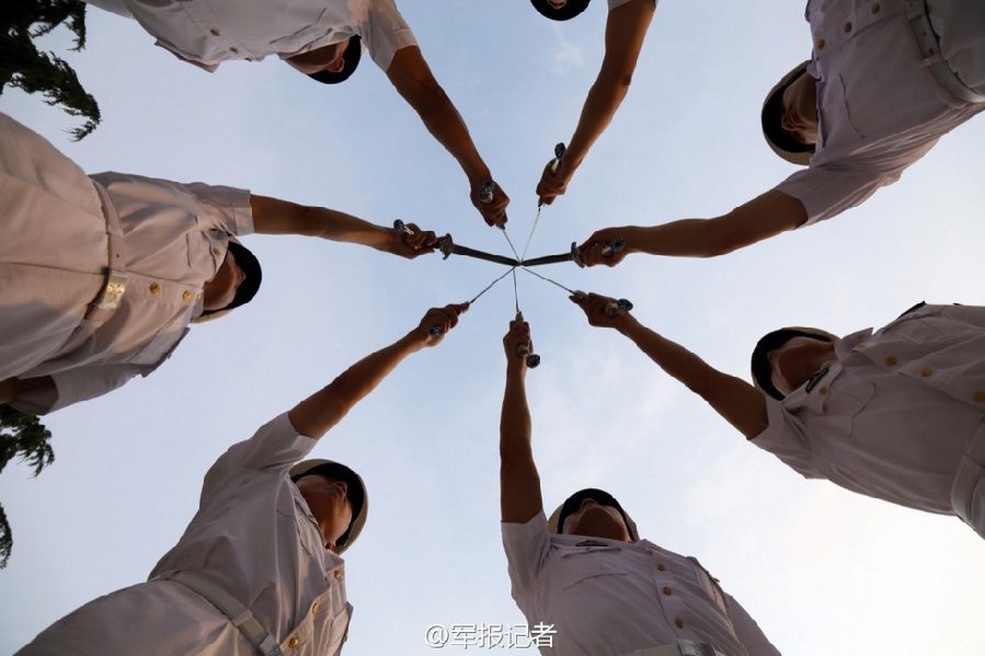 Cadets in PLA Dalian Naval Academy posed for photos at the conclusion of the graduation ceremony. (Photo source: Jie Fang Jun Bao)