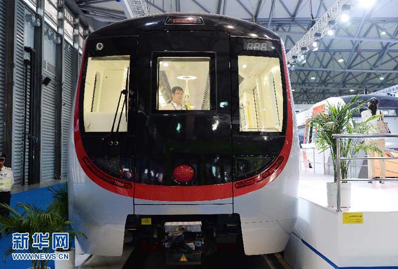 This picture shows the locomotive of the first driverless subway train at Rail+Metro China in Shanghai on June 17, 2014. It is said that this train with three carriages can carry 1,500 passengers at most. Having no cabin for the driver, the train looks like ordinary subway trains. Without the driver or stewards, this train automatically starts, departs from the station, goes uphill or downhill, stops in accurate alignment with the stations, opens and shuts the doors of carriages. (Xinhua/Lai Xinlin)