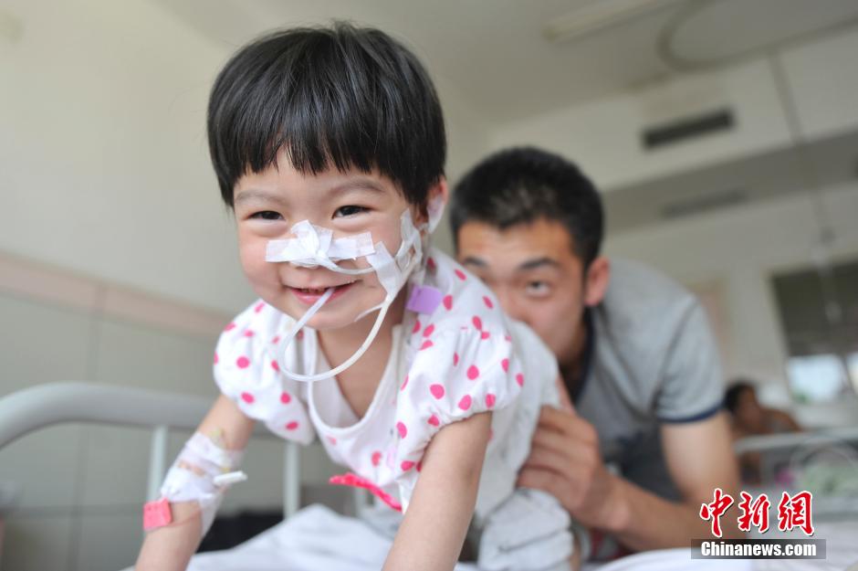 Wang Keran is recovering. She likes playing games with her father in the wards.(CNS/ Wei Liang)