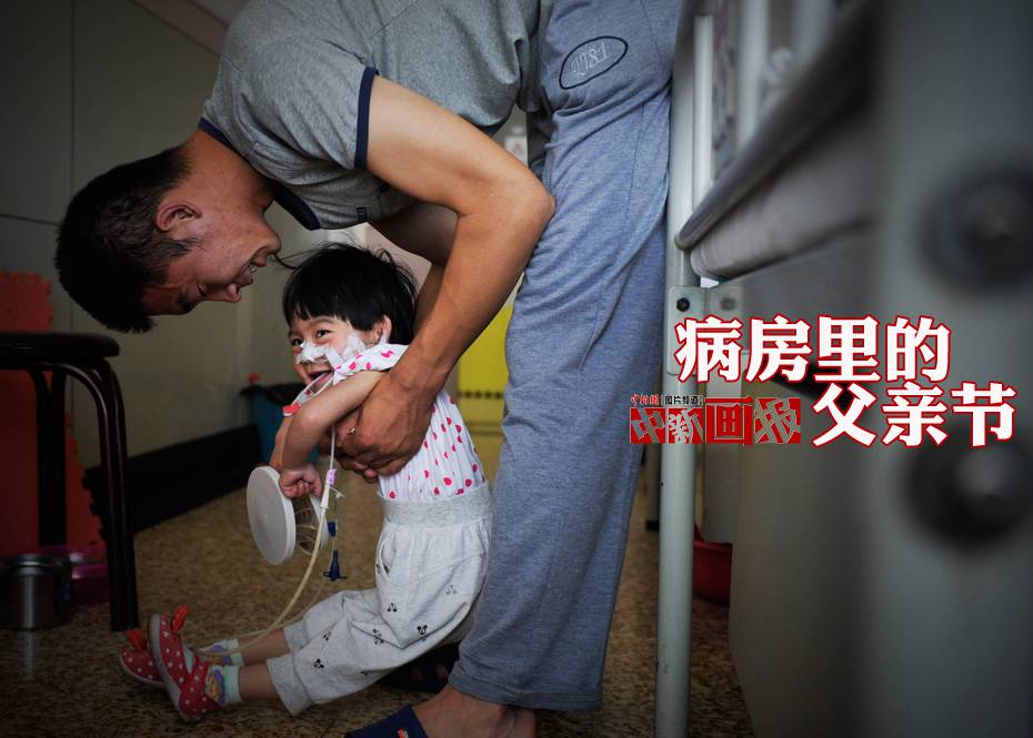 The father plays games with Wang Keran in the wards on June 12, 2014.(CNS/ Wei Liang)