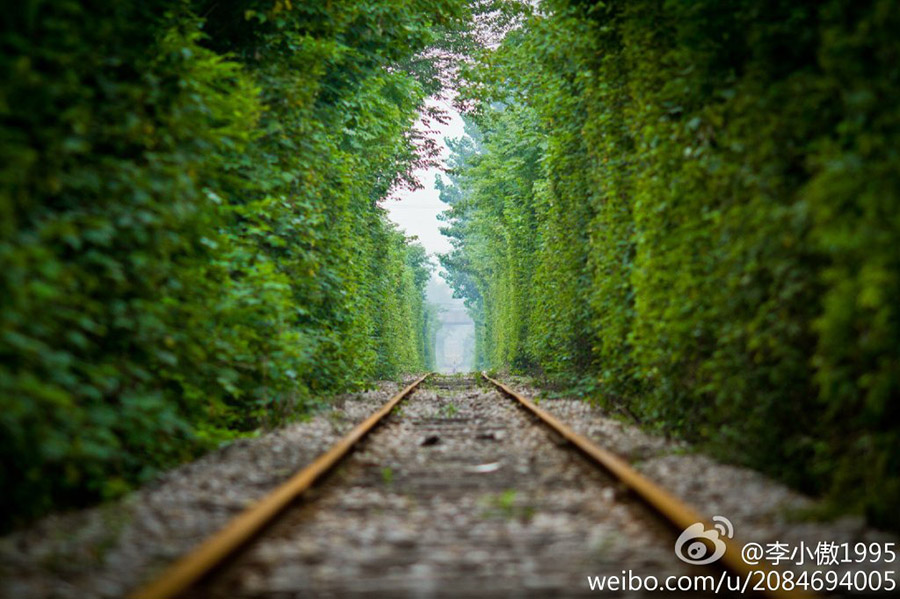 The photo shows a railroad surrounded by dense foliage in Nanjing, capital of east China's Jiangsu Province. It's been praised online as the "most naturally beautiful" railroad in Nanjing by netizens. [Photo: weibo.com]