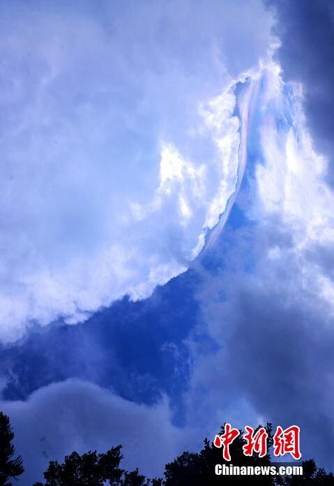 The gorgeous rainbow clouds appeared over Pingtan in southeast China’s Fujian province on Wednesday afternoon. A "Rainbow" which is made up of several colors including red, yellow, blue, green and purple is attached to the side of white clouds. An official with local meteorological department said that droplets in clouds must be of equal size to produce such clouds, which is a relatively rare natural phenomenon. (CNS/ Cai Qihui)