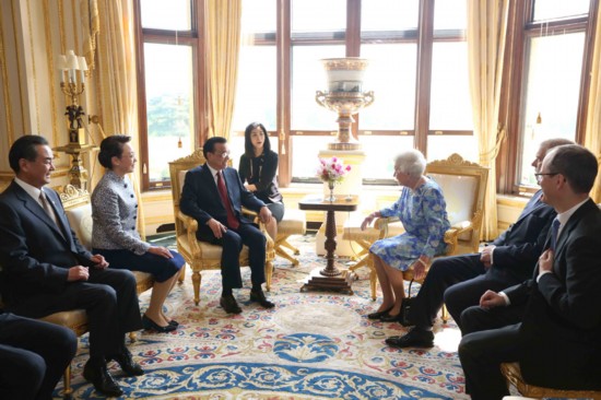 Queen Elizabeth welcomed Li Keqiang's visit to Britain, and asked him to convey her cordial greetings to President Xi Jinping. She recalled her visit to China in 1986, saying the trip had left her with a deep impression. China has undergone great changes and Britain-China relations have achieved substantial progress since her China trip, the queen said, adding that her country has witnessed an increasing number of Chinese tourists and students. Enhancing exchanges between British and Chinese youths would help them broaden their vision, increase mutual understanding and cement their friendship, she said.