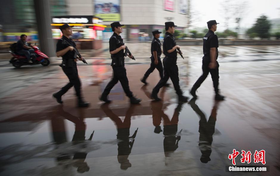 On June 18, Public Security Department of Jiangsu announced that the province will send 22,000 police officers to patrol 965 populated positions every day. They are equipped with 1,900 guns and 3,200 police cars. Armed patrol in Jiangsu began in March and has now been expanded to almost every city. The Police Tactical Unit (PTU) is equipped with armored vehicles, explosion-proof cars and assault vehicles. (CNS/Yang Bo)