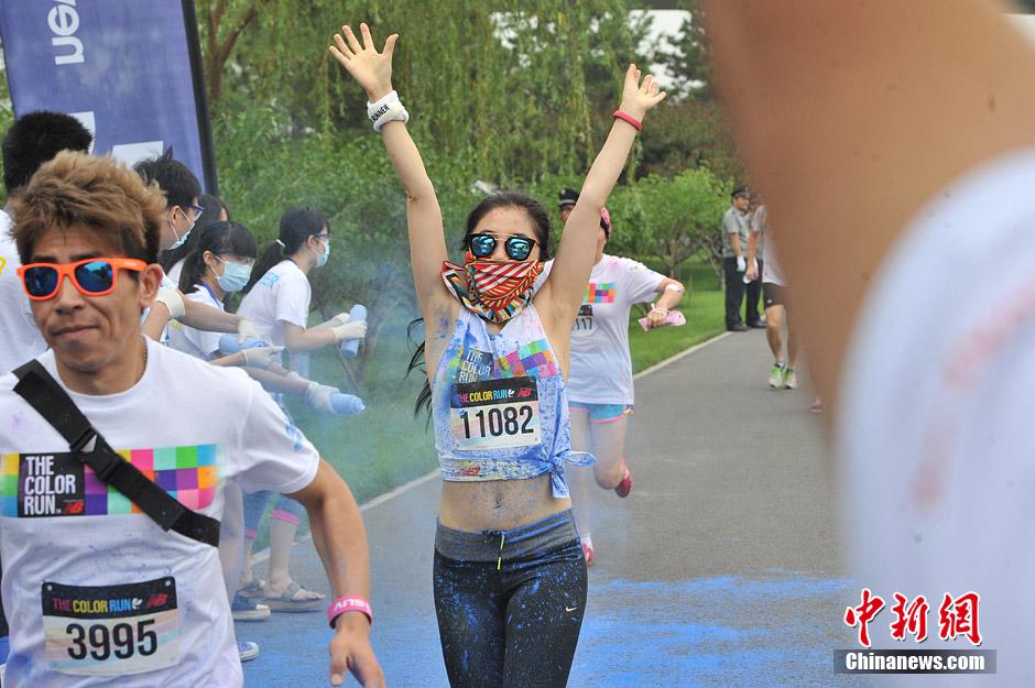 More than 20,000 Chinese and foreign runners are participating the second Beijing Color Run, which is also known as the Happiest 5K on the Planet. (xinhuanet photo/Chinanews.com)