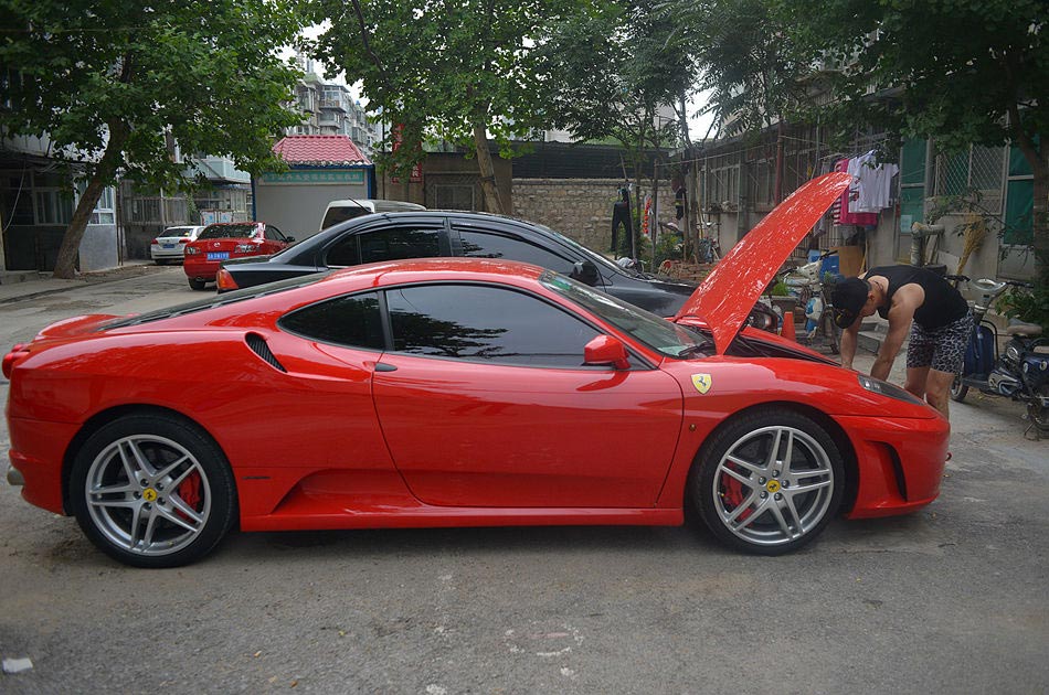 A bright red Ferrari stands in sharp contrast with a shabby shanty town in Jinan, east China’s Shandong Province, and this is the life of Zheng Jiajun, a "slumdog millionaire". (iqilu.com/Yu Peng)