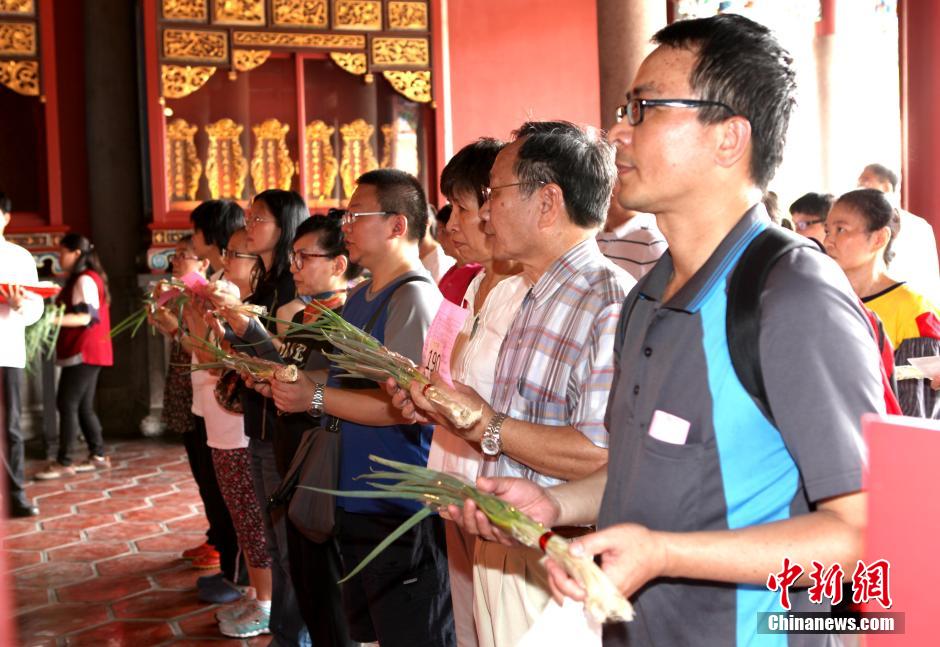 Over 100 students and parents participant in a praying ceremony, which is aimed at bringing the students good luck on their tests in Taipei on Saturday. (CNS/Chen Xiaoyuan)