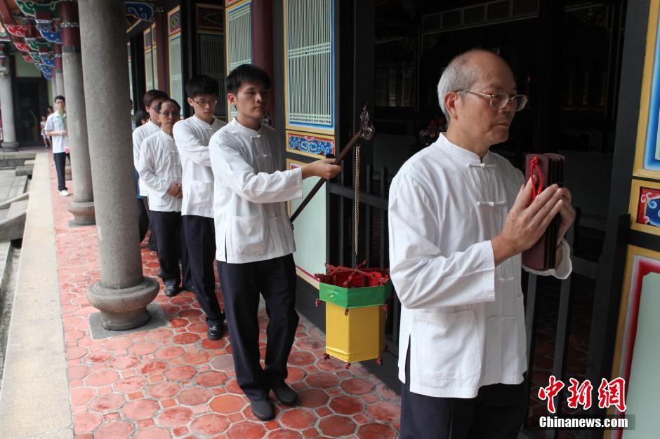 Over 100 students and parents participant in a praying ceremony, which is aimed at bringing the students good luck on their tests in Taipei on Saturday. (CNS/Chen Xiaoyuan)