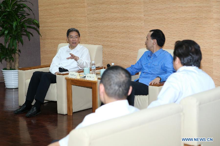 Zhang Zhijun (1st L), director of the Taiwan Affairs Office of China's State Council, meets with New Taipei City Mayor Eric Chu in New Taipei City, southeast China's Taiwan, June 26, 2014. (Xinhua/Wang Shen)