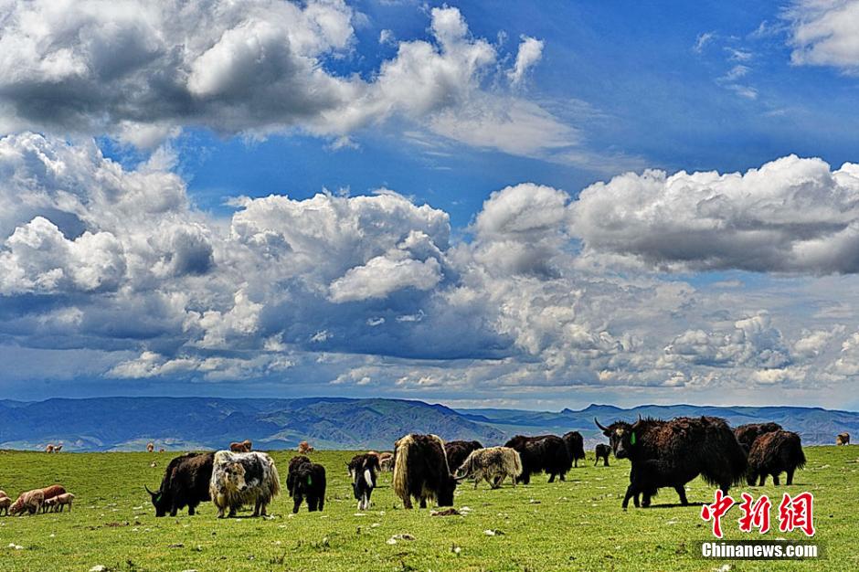 Situated at the foot of Qilian Mountain in northwest China, the Xiaritala Prairie is a feast for the eyes in summer. The snow mountains, green grass, highland lakes and immense forest constitute the unique landscape of the prairie. (Chinanews/Wu Xuefeng)