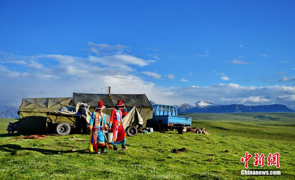 Situated at the foot of Qilian Mountain in northwest China, the Xiaritala Prairie is a feast for the eyes in summer. The snow mountains, green grass, highland lakes and immense forest constitute the unique landscape of the prairie. (Chinanews/Wu Xuefeng)