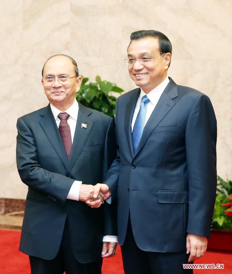 The pledge came out of a meeting between Chinese Premier Li Keqiang and visiting Myanmar President U Thein Sein, who is here for a state visit to China from June 27 to 30, at the invitation of Chinese President Xi Jinping.