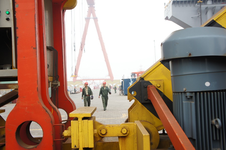 The site scene at the Tianjin Xingang shipbuilding company.(People's Daily Online/Li Xiang)