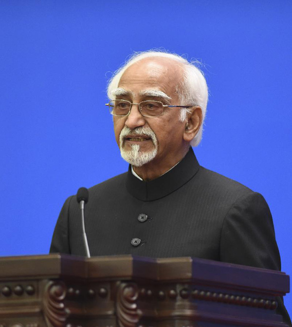 Indian Vice President Mohammad Hamid Ansari addresses a conference marking the 60th anniversary of the Five Principles of Peaceful Coexistence at the Great Hall of the People in Beijing, capital of China, June 28, 2014.[Photo/Xinhua]