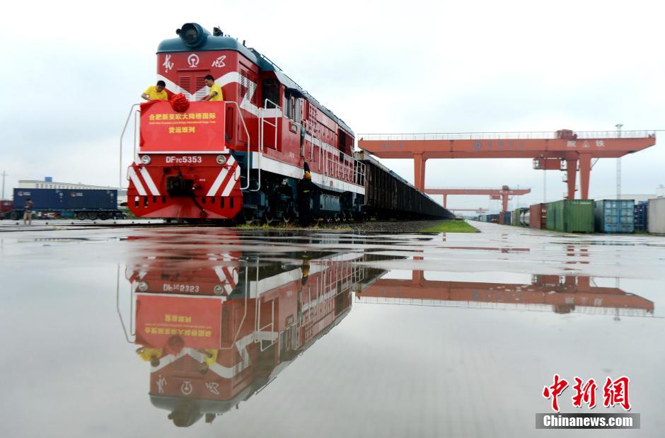 On June 26, the first cargo train along the new Eurasian Continental Bridge sets off from Hefei, central China's Anhui Province. It will cross the Alashankou and arrive in Kazakhstan, Tajikistan and other Central Asian countries in a week, and arrive in Europe in half a month. It signifies that Hefei has the direct cargo train to Central Asia and Europe, and is integrated with the Silk Road economic belt. (CNS Photo)
