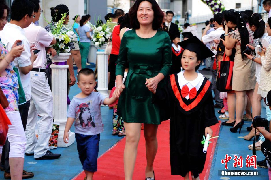 Kindergarten children walk red carpet at graduation ceremony in Qingdao (3)